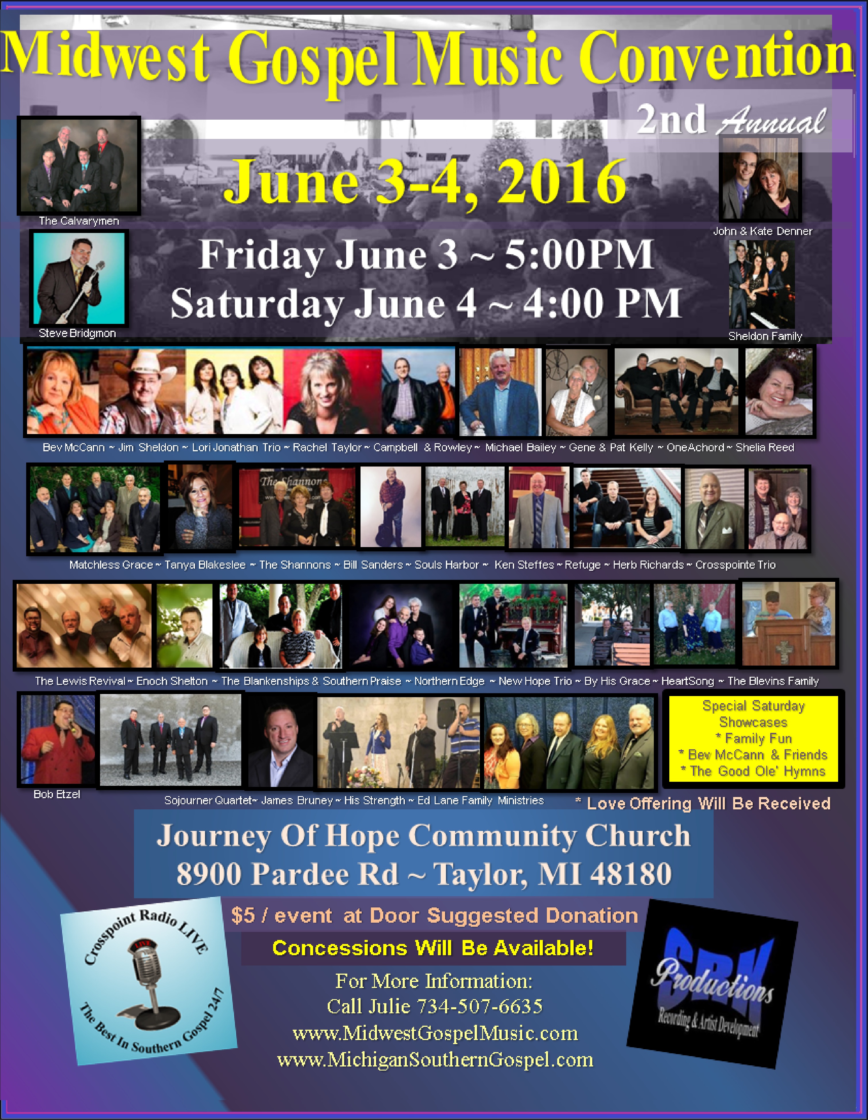 We are beyond Excited about hosting the 2nd Annual Midwest Gospel Music Convention! Please Mark Your Calendars and plan on attending One of Mid-America’s Newest and Favorite Gospel Music Conventions!