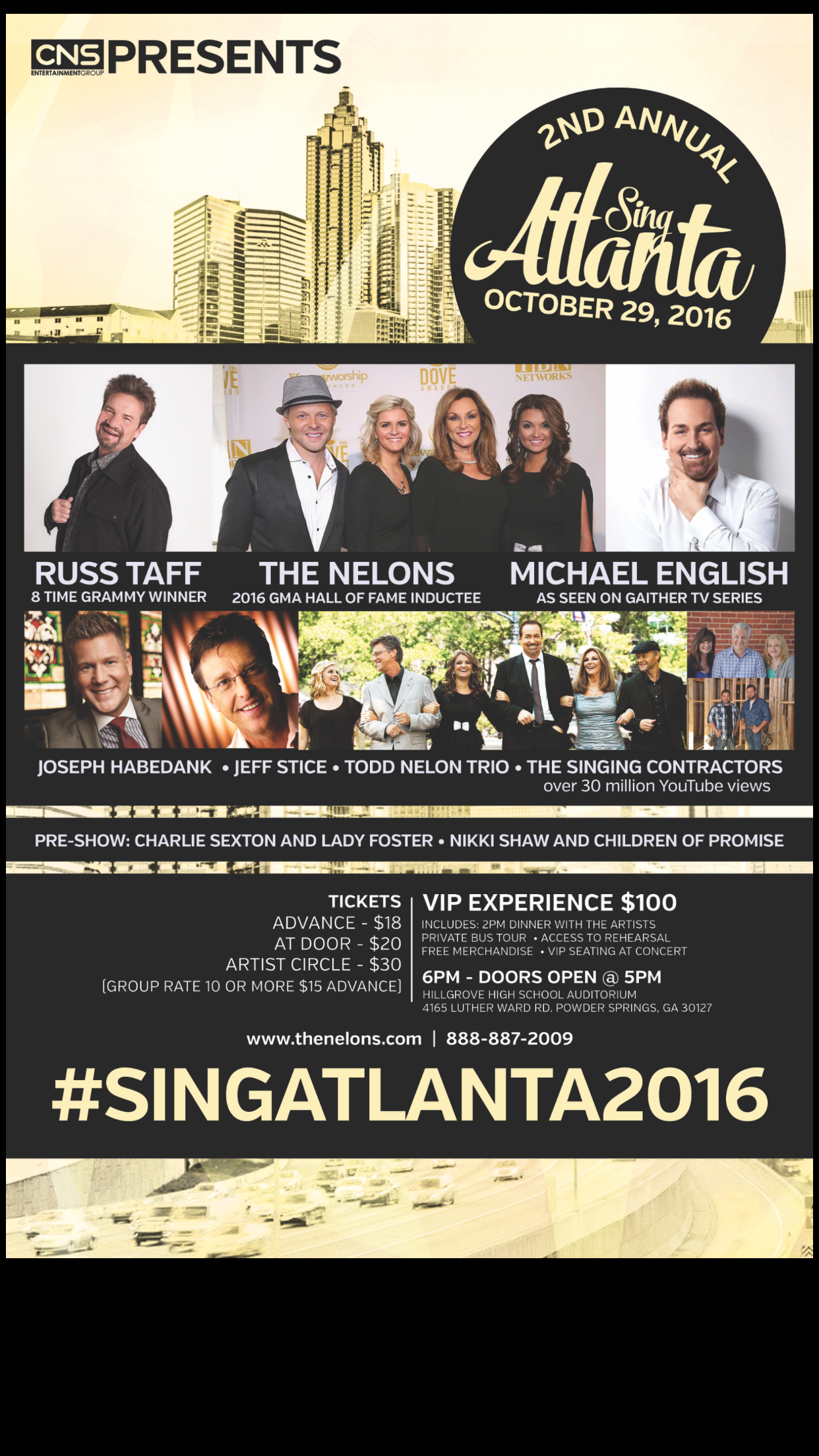 artists 2nd Annual Sing Atlanta October 29th 2016 SGN Scoops Staff Oct 17, 2016 0 2nd Annual Sing Atlanta October 29th 2016 2nd Annual Sing Atlanta October 29th 2016 Call 888 887 2009 #SingAtlanta2016 Friday – Talent Search Saturday – Concert 2nd Annual Sing Atlanta October 29th 2016Southern Gospel News