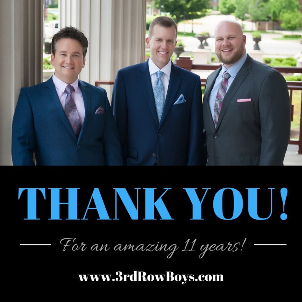 Life is truly all about seasons. I learned that many years ago, and I’m glad that I did because I’ve certainly lived through many different seasons since then! One season began almost 12 years ago, when a group was formed by 3 men that sat on the 3rd row of the church choir at the First Nazarene Church in Indianapolis, IN. At first, they simply desired to be a group that could open for other artists coming to their church on tour, but by doing so, they quickly found God’s favor and began singing outside the walls of that church. Looking for a name for their group, they thought, “why not just call ourselves the 3rd Row Boys!” The name caught on…and stayed.