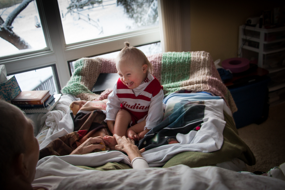 A day or so later, I sat Indy on Joey’s bed so she could spend a few minutes with her mama.  Joey had had some tough days and the decline of her condition was weighing heavy on her and all of our minds.