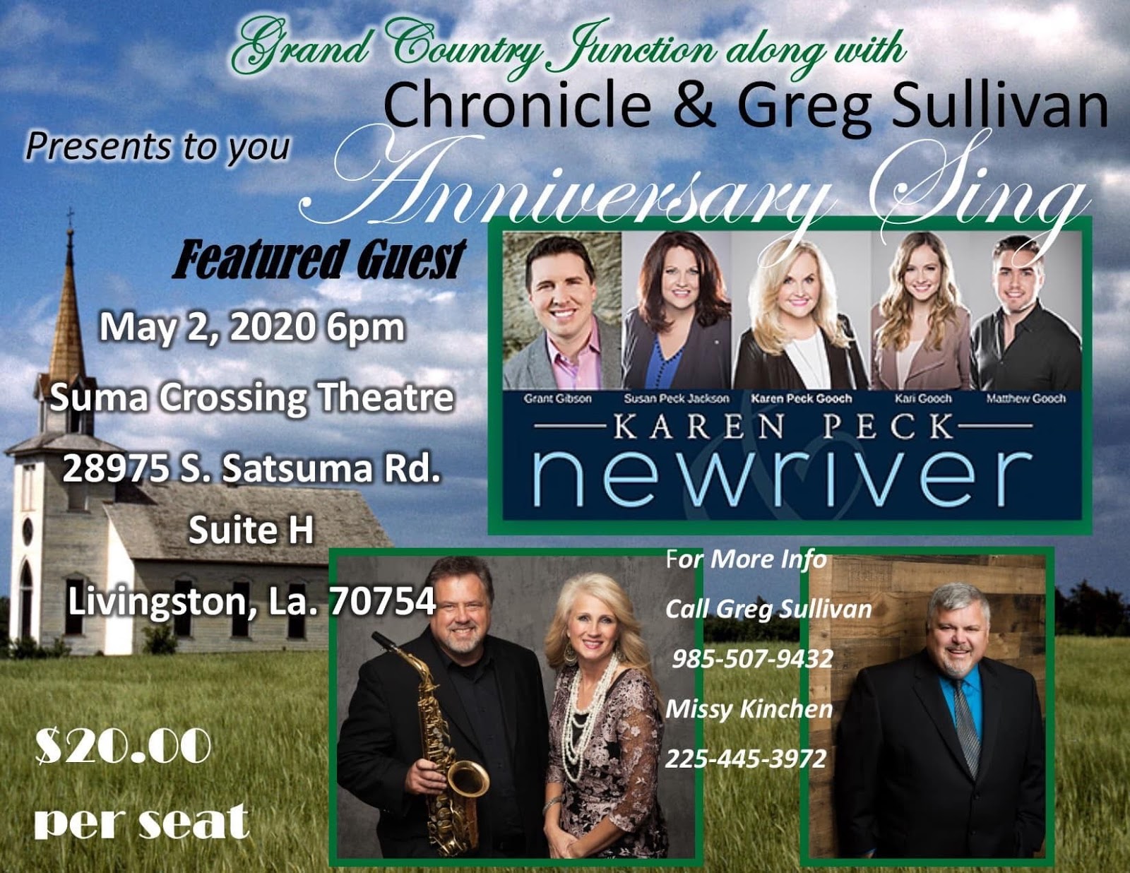 Denham Springs, LA Â – Award winning Christian duo, Chronicle, has announced their 2020 Anniversary Sing, scheduled for Saturday, May 2nd in Livingston, LA.