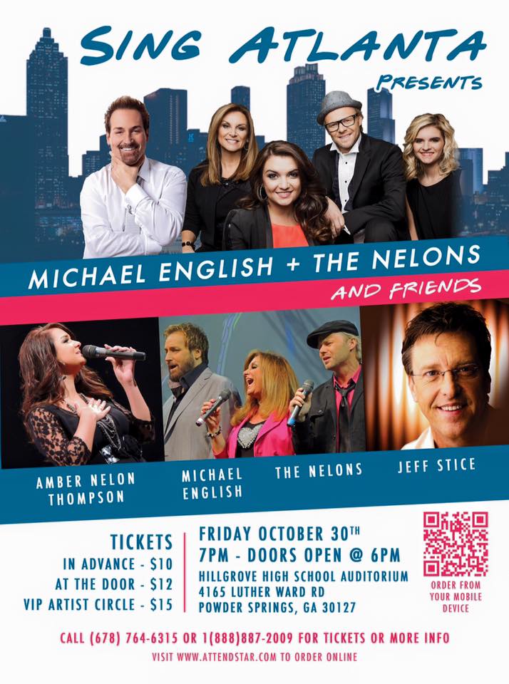 All roads will lead to Powder Springs, GA on Friday, October 30, 2015 at 7pm as CNS Entertainment brings ‘The Greatest Hits Tour’ featuring legendary artists, Michael English, The Nelons, Jeff Stice and Amber Nelon Thompson to Hillgrove High School Auditorium.