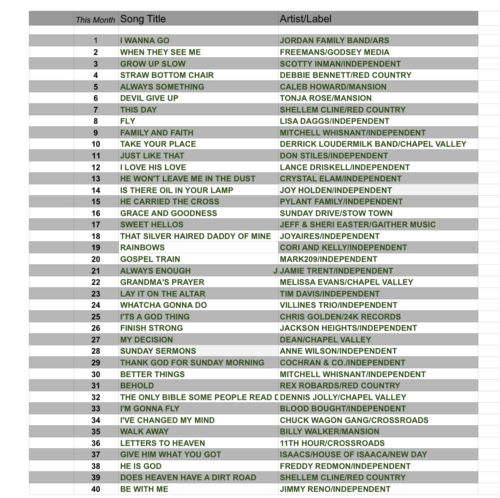 announcements Congrats to The Jordan Family Band and The SGN Scoops Top 40 Christian Country SGN Scoops Jun 20, 2022 0 Abundant TV Here Abundant TV 2 christian country