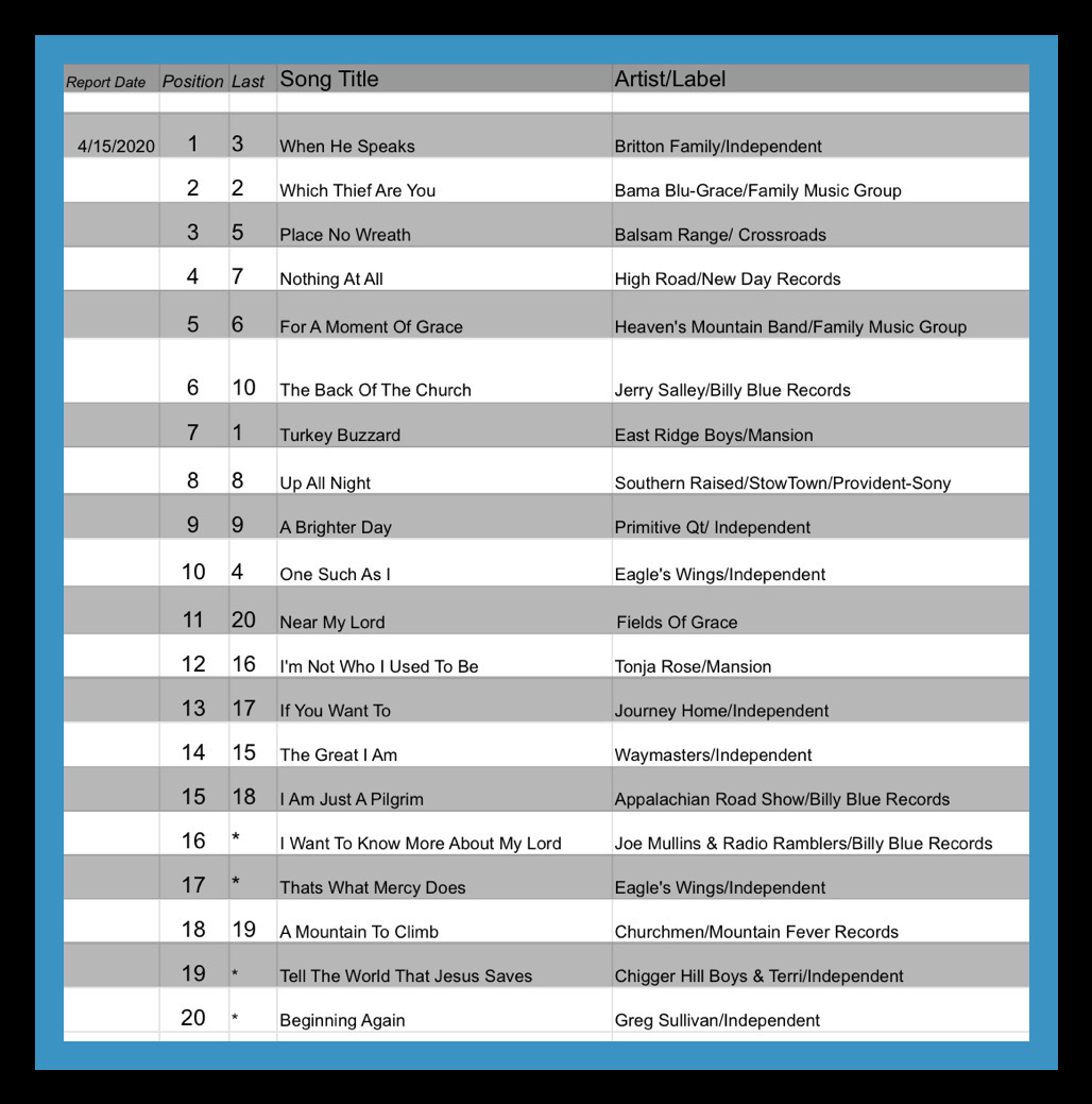 announcements Congratulations to The Britton Family and The SGN SCOOPS Bluegrass Top 20 for May 2020 scoopsnews Apr 17, 2020 0 Congratulations to the Top 20 SGN Scoops Bluegrass May 2020 The SGN SCOOPS Bluegrass Top 20