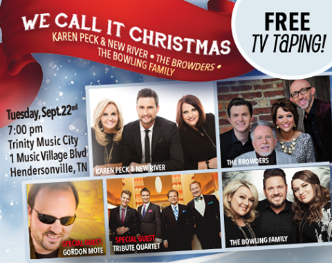 “We Call It Christmas” is a brand-new Christmas program featuring Karen Peck & New River, The Browders, and The Bowling Family.  These beloved family groups will deliver their renditions of timeless classics, as well as new original Christmas tunes and share their favorite memories of Christmas with their families.  Along with special guests Tribute Quartet and Gordon Mote, the evening promises to be one to remember.