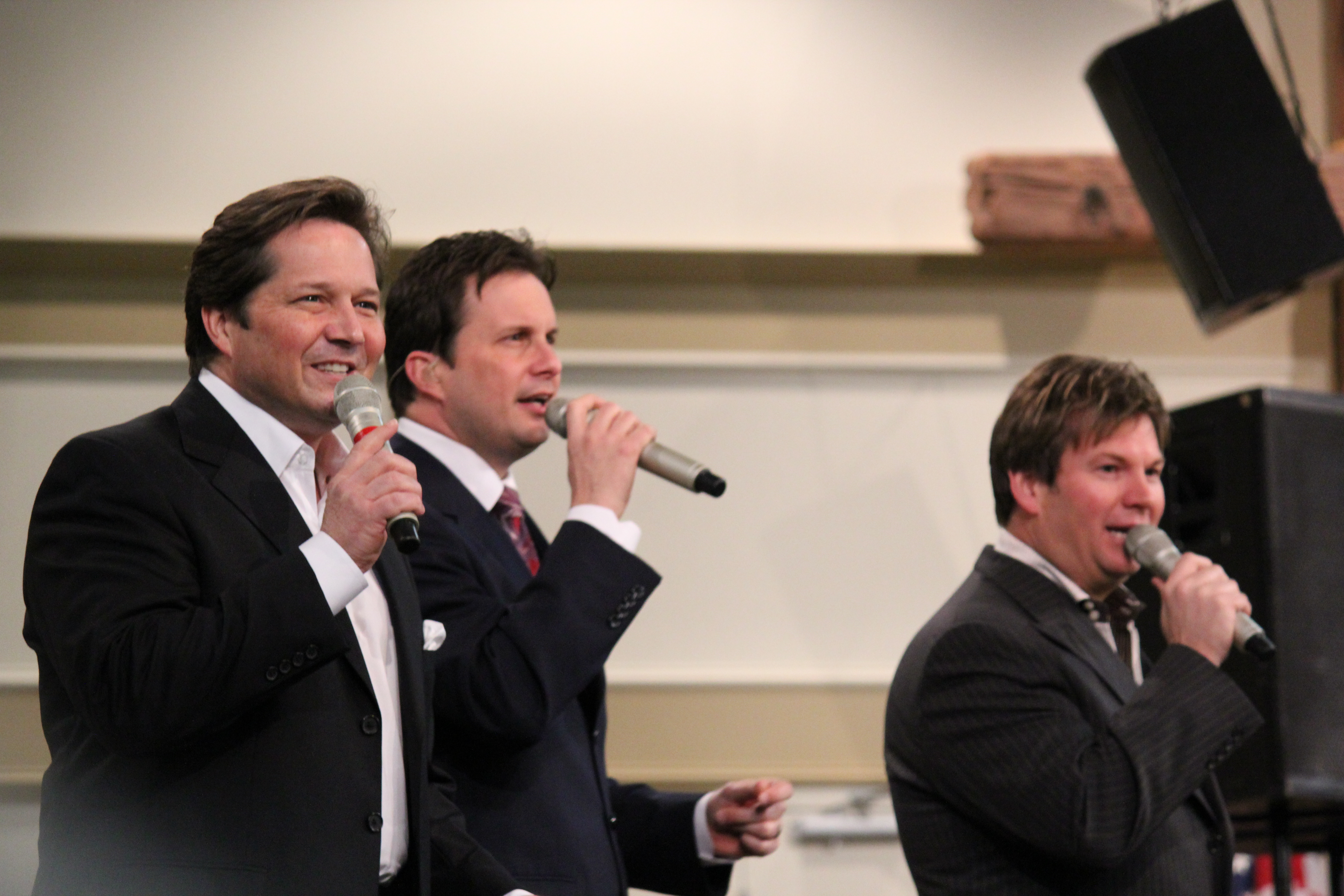 After an official group introduction, Michael teased about how they had all grown up with the black leather, red letter edition of the King James version of the Bible in an Independent Baptist Church singing hymns. He explained that whoever said “Music brings the world together†was wrong! “Music is divisive,†Michael said, “Just get grandparents and kids in the car together and let them find a radio station they both like.†In a more serious way, Michael explained their love for great hymns of the church and explained that since hymns have been effective in the church for many years, we need to keep them. With that said, the Booth Brothers toned down their power-house vocals and sang a medley of hymns A Capella. It was absolutely beautiful!