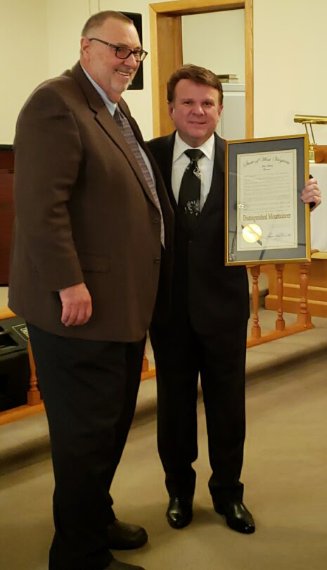 Liberty, WV – Gary Casto was presented with the “Distinguished Mountaineer†award on Saturday, May 11, 2019 during an appearance at his childhood church – Emma Chapel – in Liberty, WV. Casto, the manager and lead vocalist of multi-award winning group, Tribute Quartet, was chosen to receive this award by West Virginia Governor, Jim Justice. Casto was presented the certificate at the close of Tribute’s concert by family friend, John Hoffman.The honor of “Distinguished Mountaineer†is awarded to one or two recognized citizens a year. It was awarded to Casto in recognition of his efforts, accomplishments and successes in the field of Gospel music and performance. Gary states, “This is an absolute surprise! My home state and the people within are forever branded on my heart. It is an honor to proclaim West Virginia my home.â€