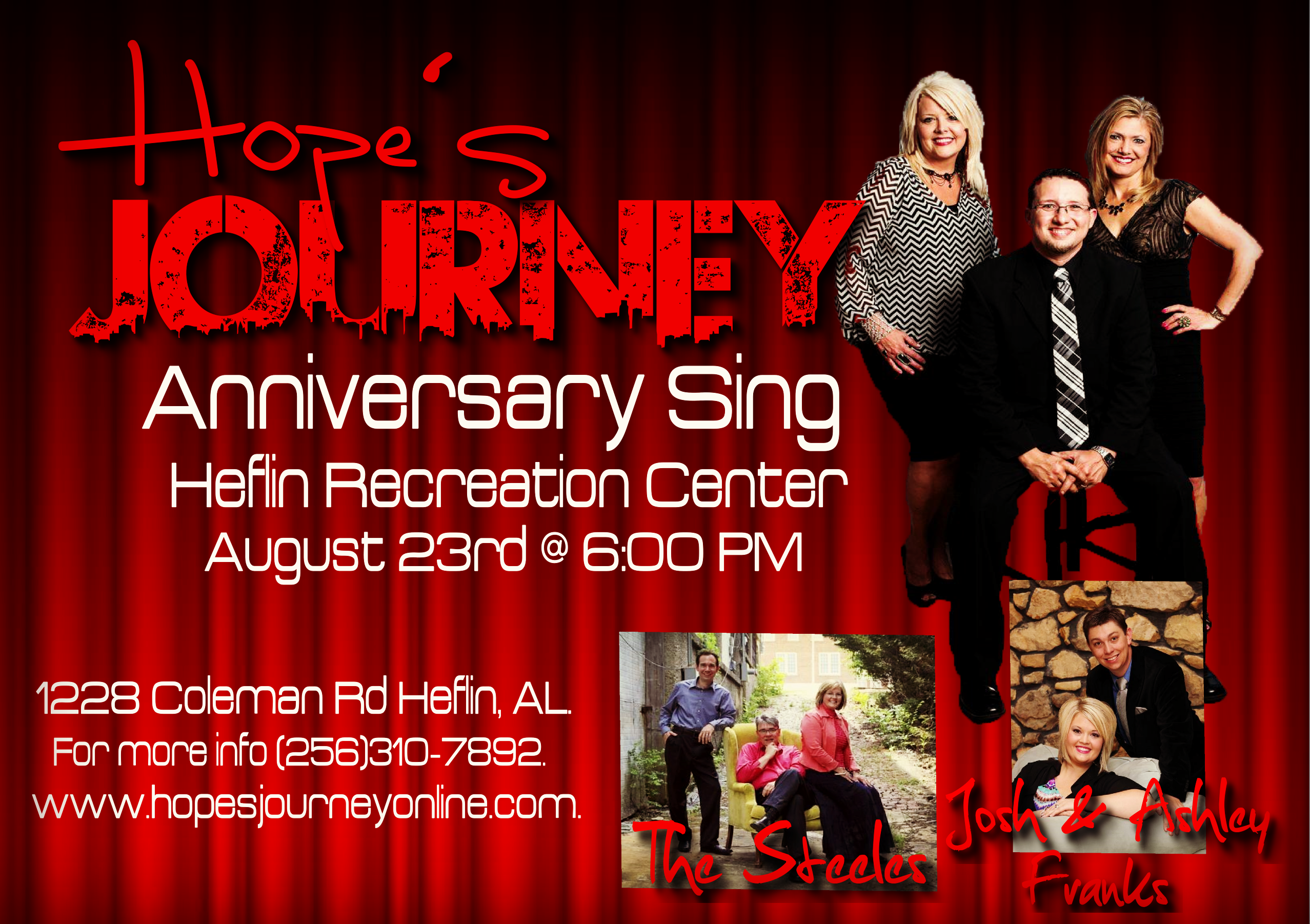 christian entertainment Hope’s Journey Anniversary Sing August 23rd SGN Scoops Staff Jul 9, 2014 0 Hope Journey Hope’s Journey Anniversary Sing August 23rd Find More Info Here Hope's Journeysouthern gospel concertsSouthern Gospel News