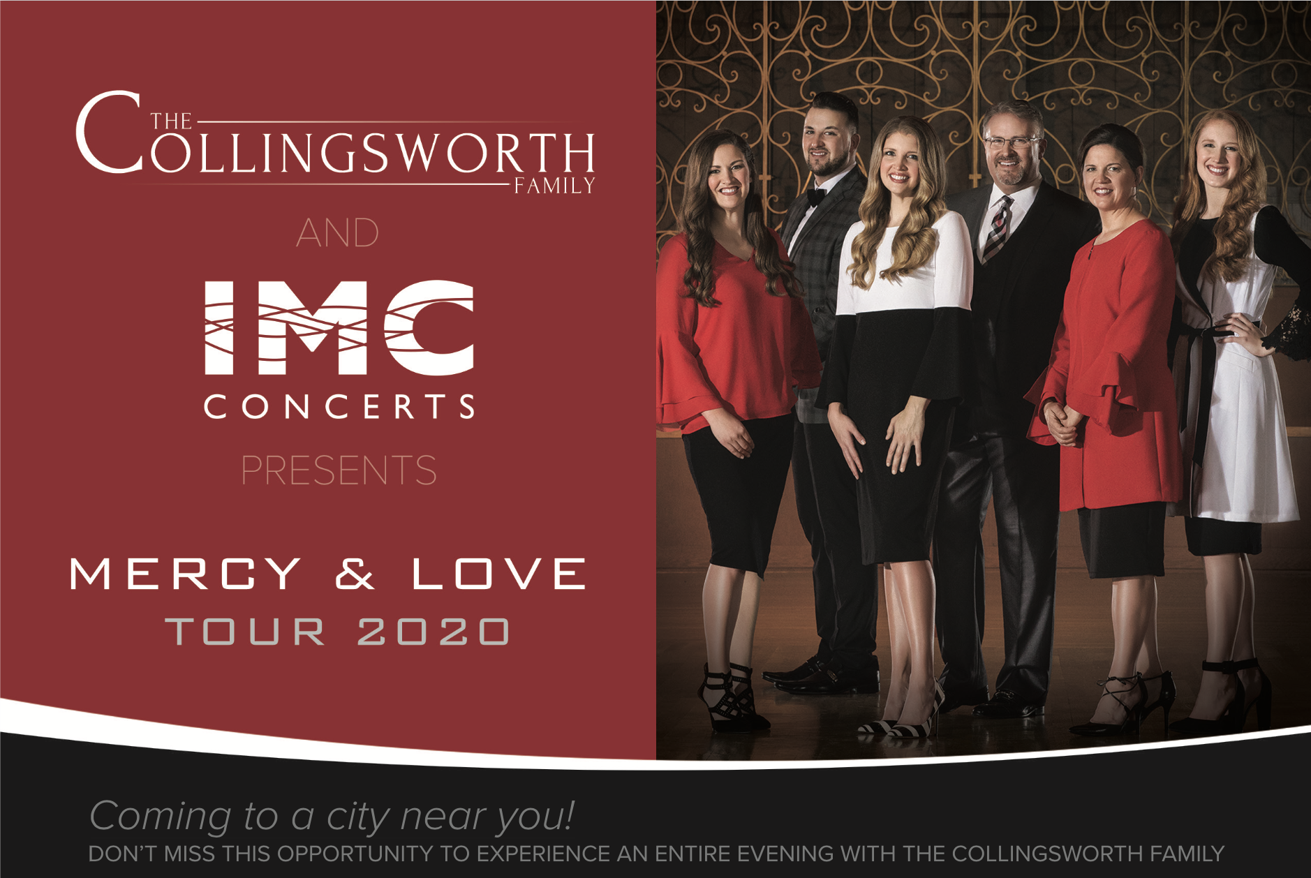 A complete list of Mercy & Love Tour concert dates with The Collingsworth Family, promoted by IMC Concert, is available at http://www.imcconcerts.com/ artist.php?id=16.