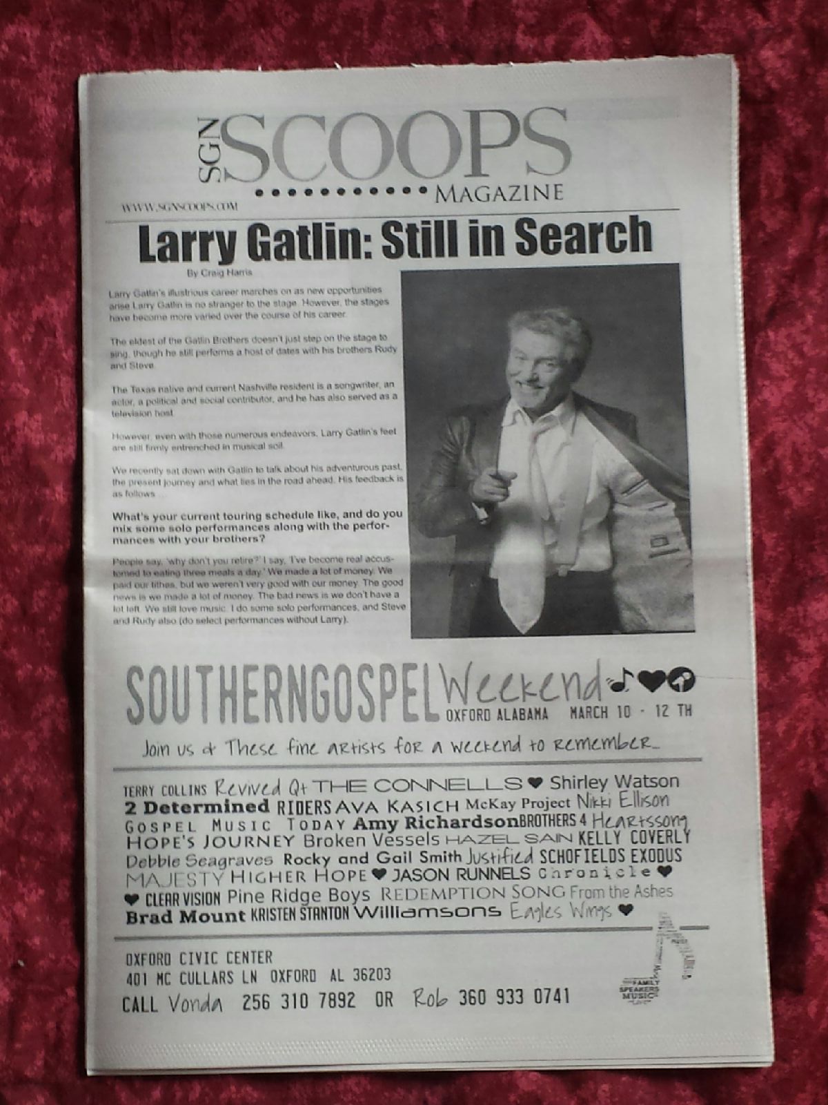 Filled with artist pictures, features and even our Top 100, this condensed version of our monthly magazine is a great way for you to have a material copy of one of the leading magazines in Southern Gospel and Christian Country. Please click on this link for more information. And remember, for more Southern Gospel and Christian Country news, follow SGN Scoops on Facebook HERE