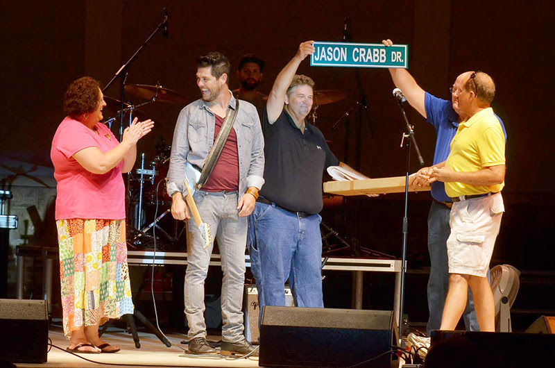 â€We were thrilled to have Jason come home for this concert,†shared Mayor Paul Sandefur. “We were even more thrilled to show him how proud we are of him and his work by naming the street into Beaver Dam’s new amphitheater after Jason, Jason Crabb Drive!” Sandefur, along with City Commissioners Charles Patton, Kevin Davis and Sandy Robinson, presented him with the honor.