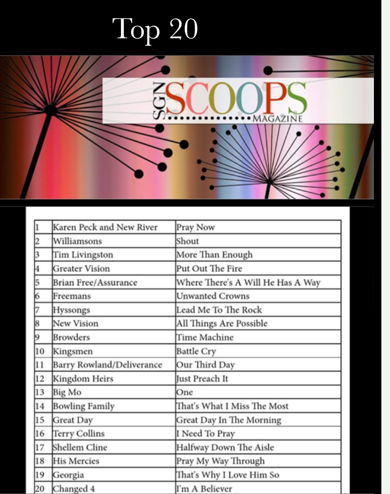Karen Peck & New River Top This Month’s SGNScoops Chart. Thanks to all the Southern Gospel radio stations that submit their charts each month.