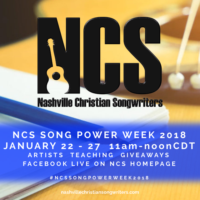 NASHVILLE, Tenn.  Nashville Christian Songwriters, a coaching and resource company dedicated to empowering Christian songwriters worldwide, has announced its first ever NCS Song Power Week, a Facebook Live event launching Monday, January 22, 2018, and running through Saturday, January 27, 2018, from 11:00 a.m. – noon.
