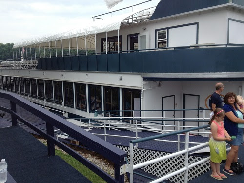 If the Madam were on salt water, she would be classified as a ship. She is 135 feet in length with a beam of 36 feet. She is powered by twin V-8 Detroit Diesel Engines and cruises at 10 knots. She carries 750 gallons of fresh water and 825 gallons of diesel fuel.