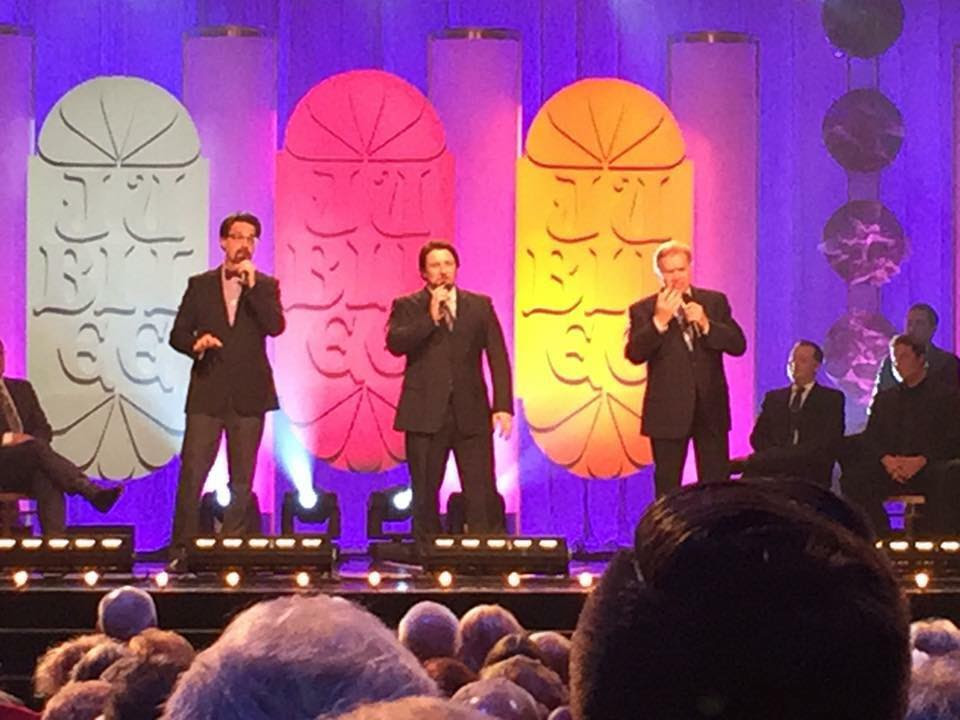 Nashville, TN Award winning trio, Three Bridges performed on the Harmony Honors show, presented by the Southern Gospel Music Guild on June 7 in honor of Gospel legend, Les Beasley and the Gospel Singing Jubilee TV Show. Members Elliott McCoy, Shannon Smith and Jeremie Hudson sang, “He Touched Me,â€Â written by Bill Gaither in commemoration of the original songs that were a part of the Gospel Singing Jubilee. Adding their talents to this spectacular show were Jason Crabb, Ronny Hinson, Freedom Quartet, Inspirations and Karen Peck & New River and others. Trinity Music City was the perfect venue to host this gala event.Â