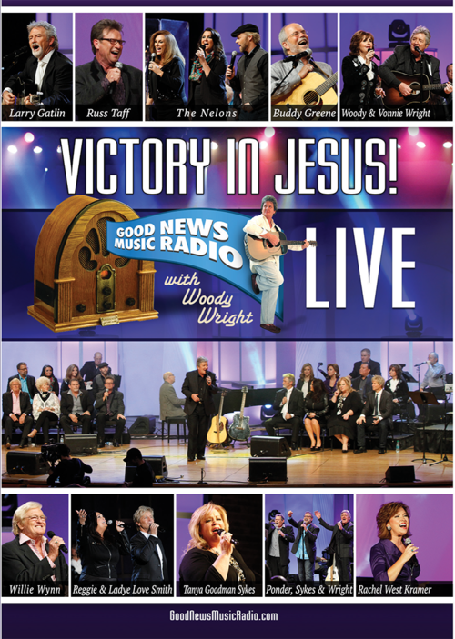 You’ll be moved by inspiring performances from Larry Gatlin, Russ Taff, The Nelons, Buddy Greene and Jeff Taylor, Woody & Vonnie Wright, Willie Wynn, Tanya Goodman Sykes, Ponder, Sykes & Wright, Rachel West Kramer, Jairo Arvizu, Maria Kramer all backed by Gary Prim and The Good News Music Radio Band! Victory In Jesus is the theme for this program and this concert joyfully proclaims the Good News of Jesus Christ!